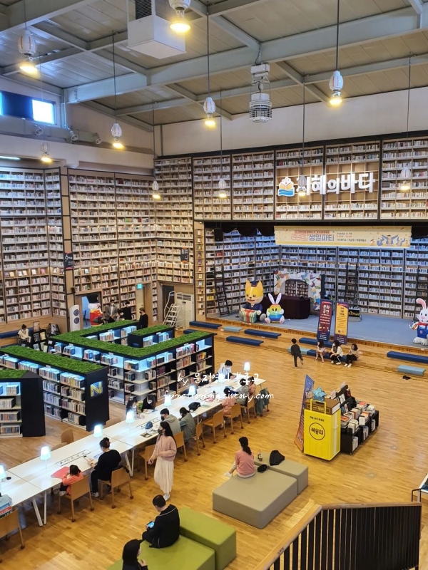 도서관 내부에는 어린이들을 위한 꿈다락방과 빈백 소파 등이 마련되어 있어 아이들이 책과 친해질 수 있는 환경이었고 내부에 카페가 있어 독서 중간에 휴식을 취하기에도 좋습니다. 주차 공간도 넉넉하여 가족과 함께 방문하기에 편리한 장소입니다.