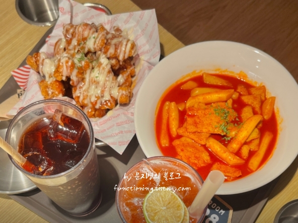 보드게임 및 서비스 300여 종의 다양한 보드게임이 준비되어 있으며, 룸마다 비치된 태블릿을 통해 게임 추천 및 설명을 확인할 수 있어 초보자도 쉽게 즐길 수 있습니다. 또한, 음료와 스낵 주문, 직원 호출도 태블릿으로 간편하게 이용할 수 있습니다. 음식 및 음료 다양한 음료와 함께 떡볶이, 순살치킨 등 퀄리티 높은 스낵 메뉴가 있는데 특히 떡볶이와 치킨의 조합이 인기 있습니다.